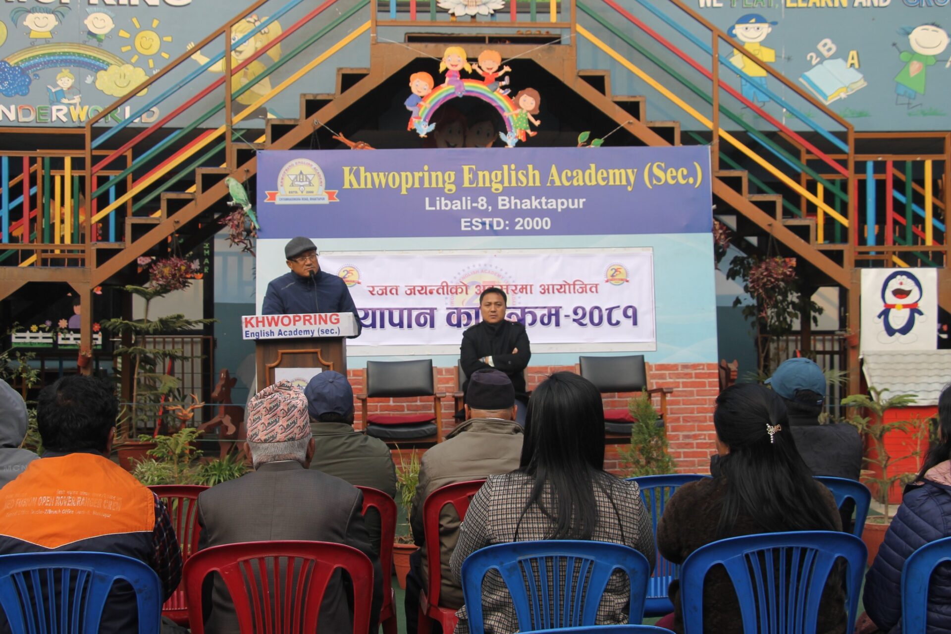 भक्तपुर । भक्तपुरको लिवालीस्थित ख्वप्रिङ्ग इङलिस सेकेण्डरी स्कुलले रजत जयन्ती मनाउने तयारी गरेको छ । विद्यालयका प्रधानाध्यापक दिपेन्द्र प्रजापतिले विद्यालयले फागन ८ गते रजत जयन्ती बनाउने तयारी गरेको बताए । त्यसका लागि विभिन्न कार्यक्रम तय भएको उनको भनाइ छ ।