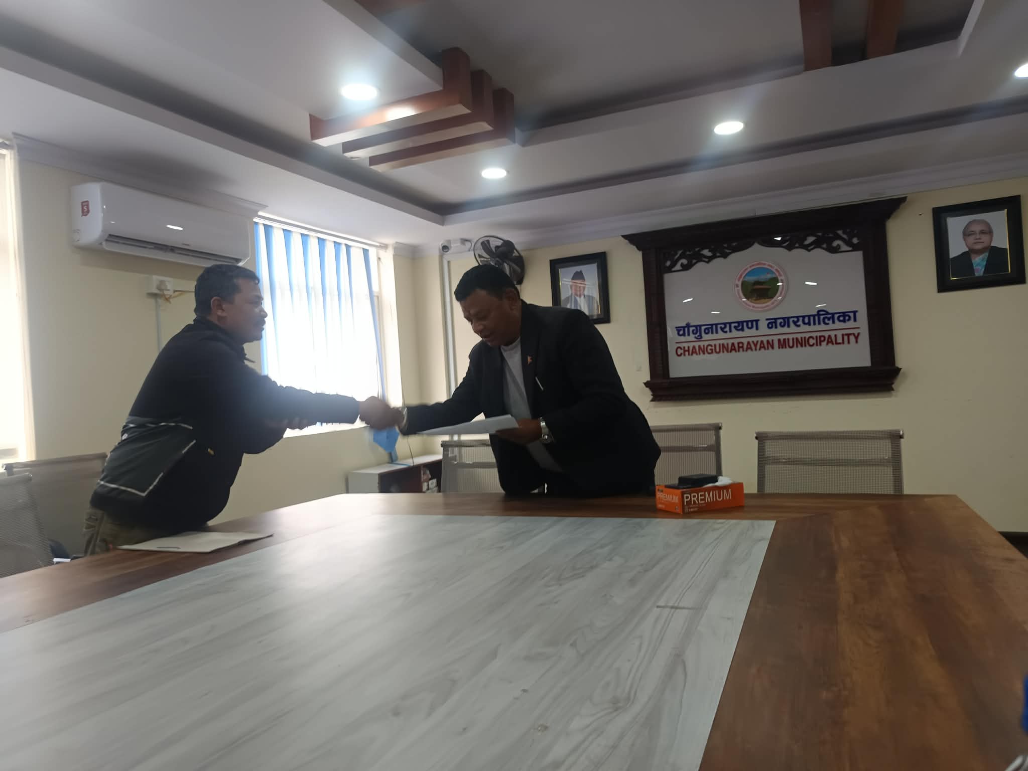ज्ञापनपत्र बुझाउन गएको स्थानीय टाेलीमा सहभागी हरिसुन्दर छुकांले नगर प्रमुख जीवन खत्रीलाई ज्ञापनपत्र बुझाउँदै माटाे उत्खनन र दाेहनमा सहभागीहरूले नगरपालिकाकाे नीतिगत कमजोरीकाे फाइदा उठाएकाले तत्काल नगरपालिकाकाे ध्यानाकर्षण हुनुपर्ने बताए ।